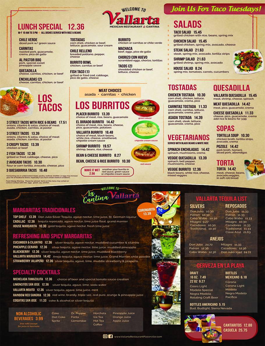 We have a variety of Mexican dishes to please all of our guests. We use only the finest and freshest ingredients. Our chiles and spices have been combined to give Vallarta’s hearty flavors and mouth watering savory aromas. We feature a variety of beer, as well as frosty margaritas…